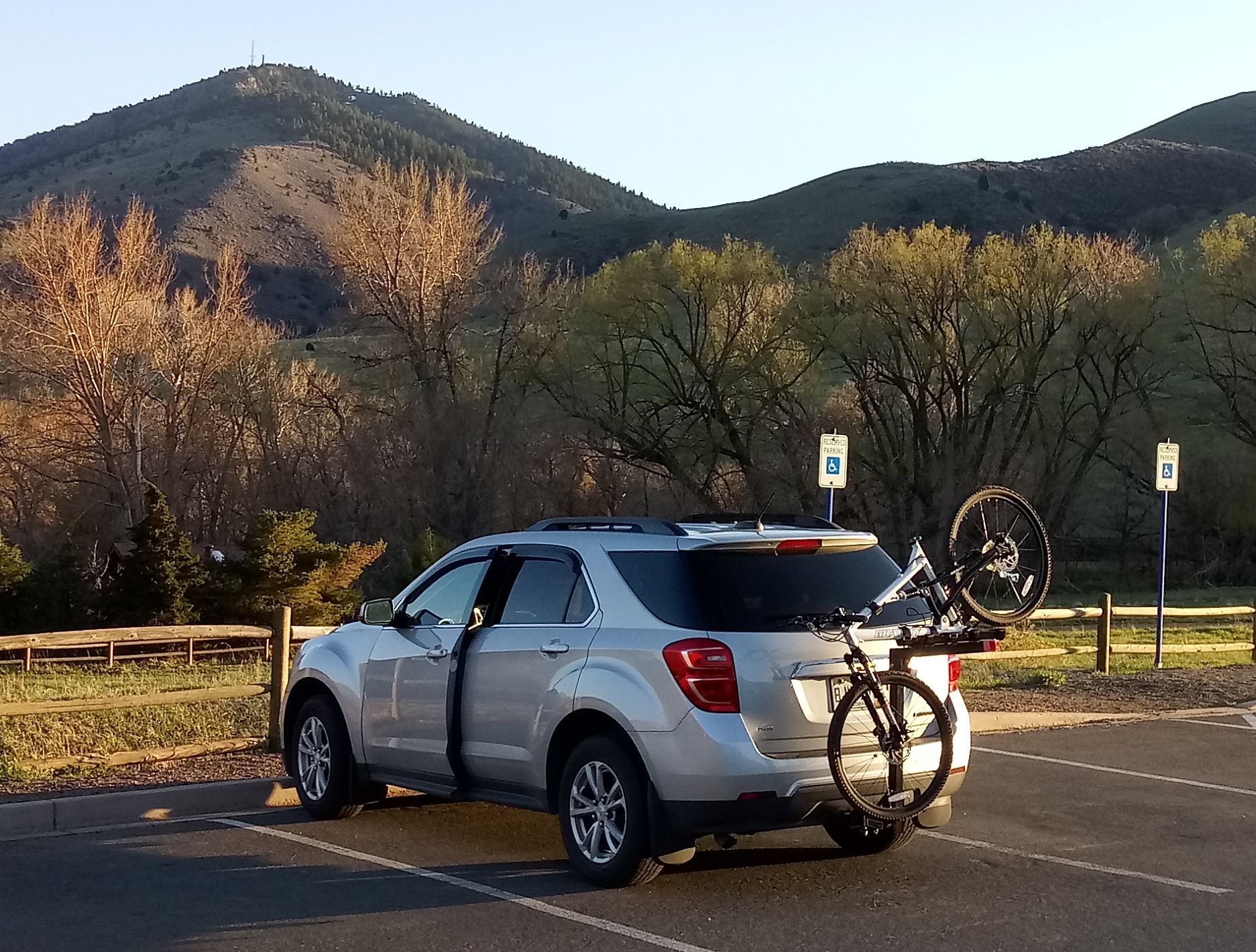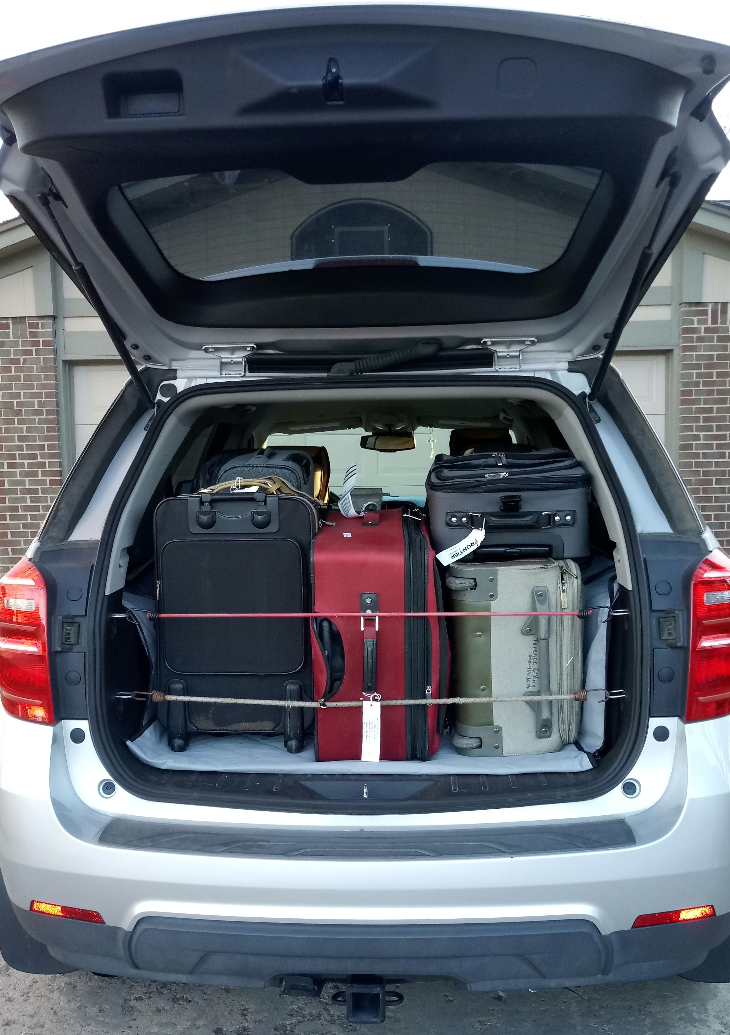 There is plenty of seating space with room for 3-large or 4 average size adults. Our 31.5 cubic foot cargo space allows for 3 large or 5 medium-size suitcases plus carry-ons with the option to add a roof-top cargo bag or 6-skis / 4-snowboard roof rack. We can also transport up to 4 street or mountain bikes with our bike rack.