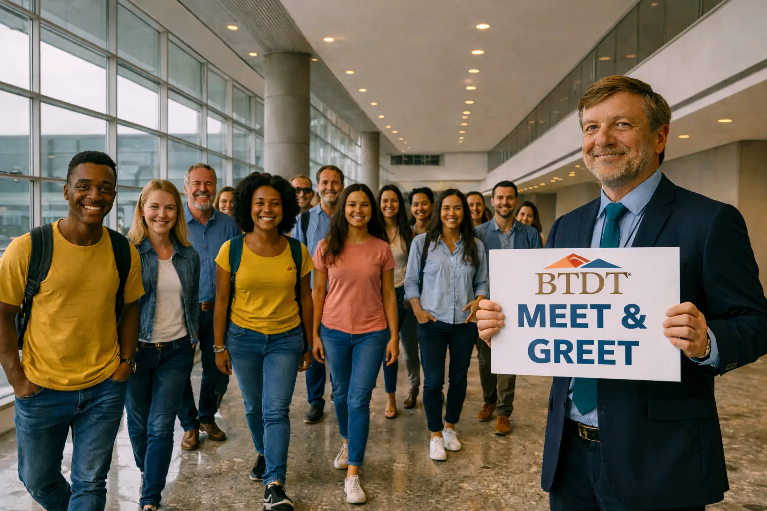 Inside‑terminal or curbside greeting, baggage assistance, regrouping, wayfinding, and a smooth handoff to your driver or coach staging area.